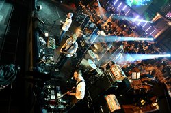 Take Knife Party. Two guys from Pendulum, by their own admission doing 'exactly what they want'. You can tell - each song gets about 90 seconds before colliding with the next. To be fair, they have a remarkably impressive back catalogue for having existed barely a year - the warped reggae of 'Bonfire', the frazzled modem that is 'Internet Friends', their remix of Swedish House Mafia's 'Save the World' (and 'Antidote', their collaboration with same) all get a quick blast. Then there's growling monster 'Centipede' and the slightly intimidating 'Sleaze'. All at least hinted at, if barely played, punctuated by the encouragement of Dundrum MC (and we're not making that up) Gareth McGrillen - as if we needed it.
